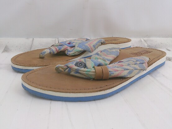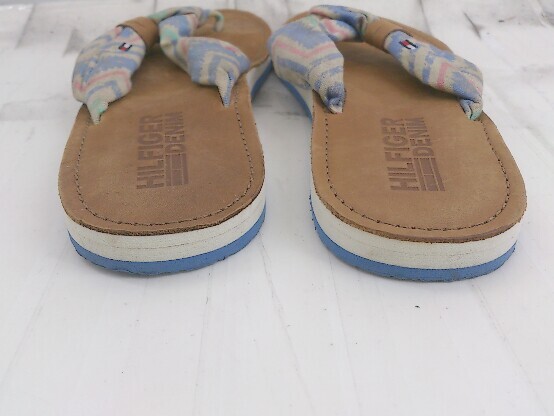 ◇ HILFIGER DENIM ヒルフィガーデニム フラット トング サンダル サイズUSA6(23.0cm相当) ベージュ ブルー系 レディース P