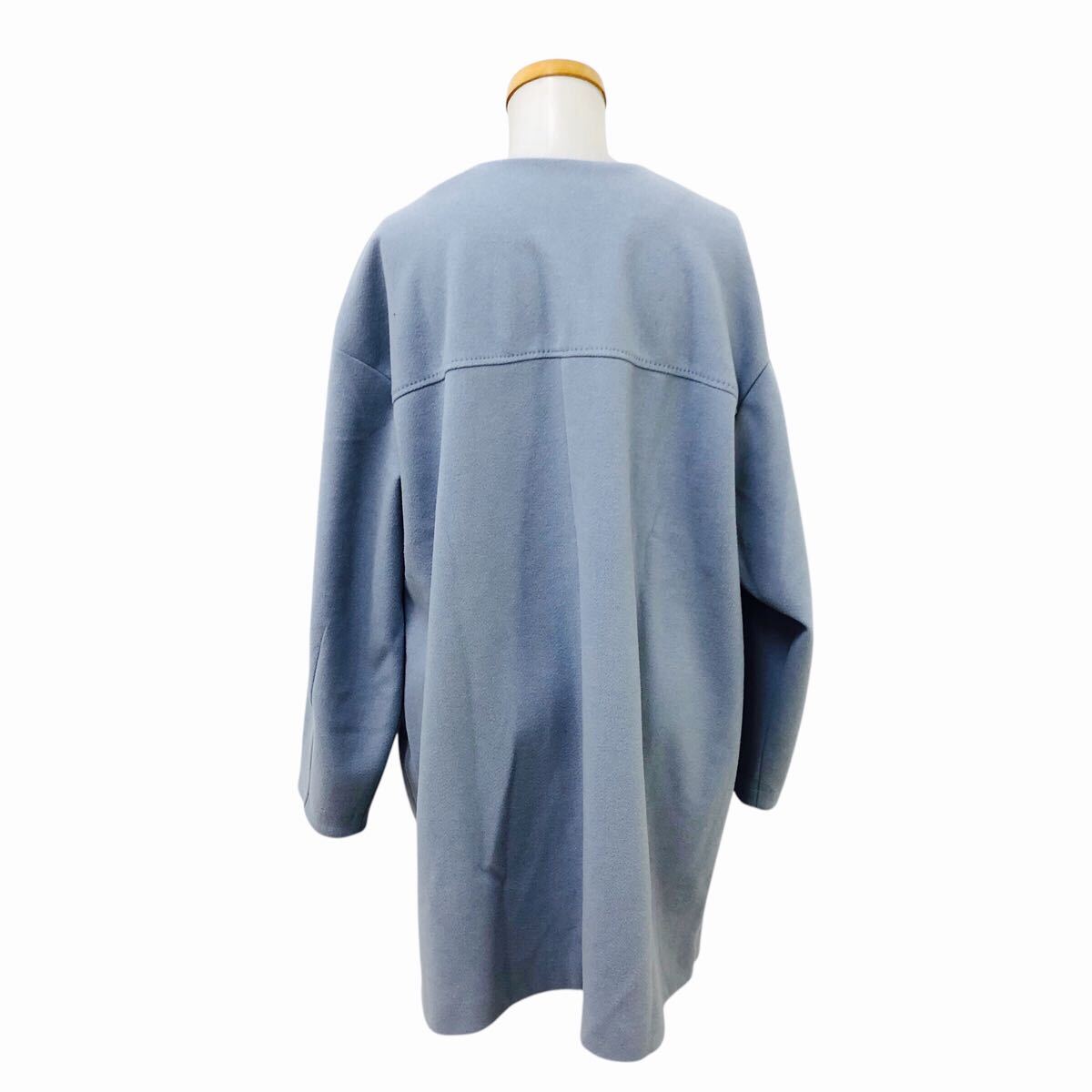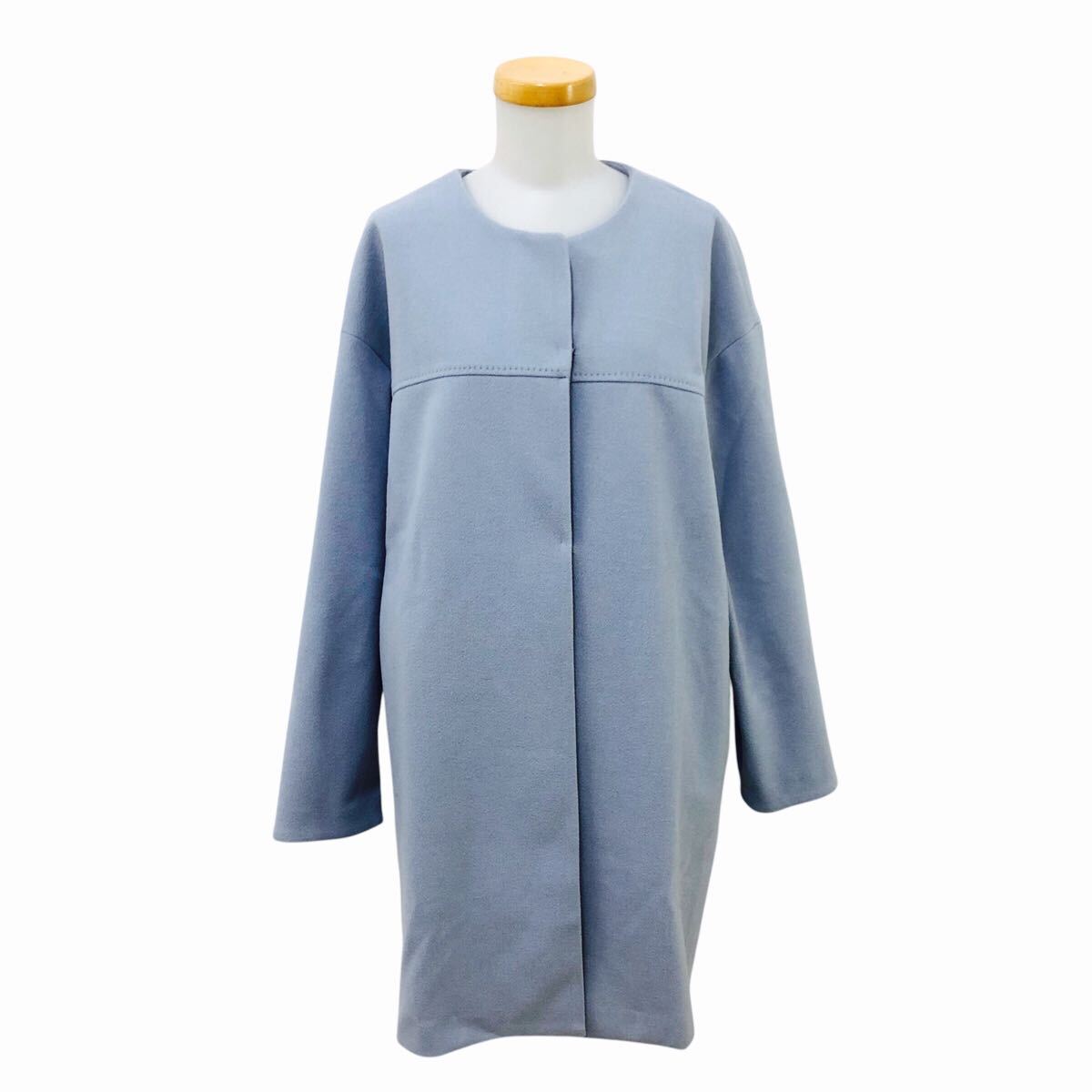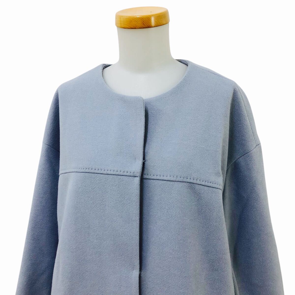12Nm347-39 大きいサイズ EVEX by KRIZIA エヴェックス バイ クリツィア ノーカラー コート 上着 羽織り アウター ライトブルー 水色 44