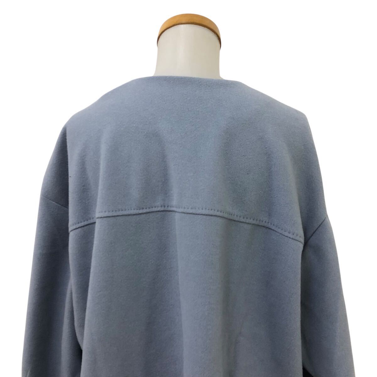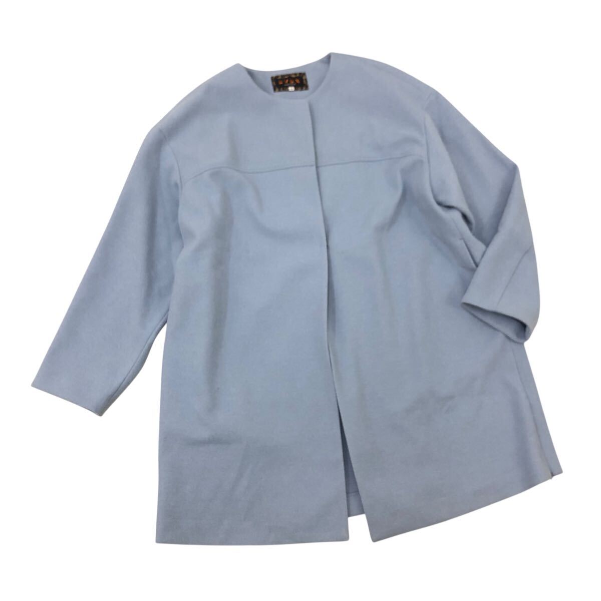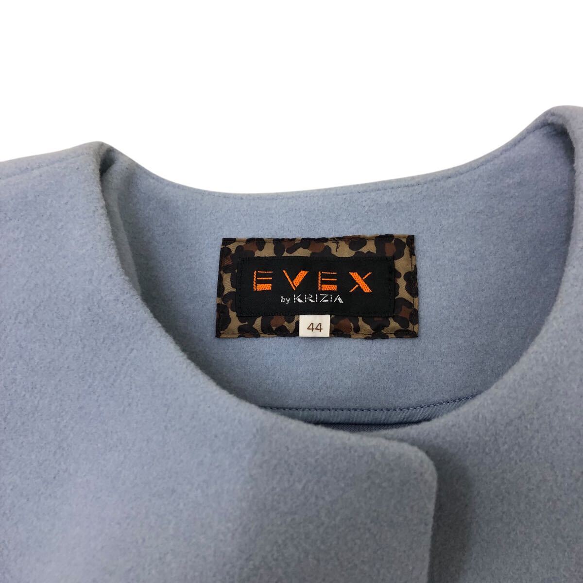 12Nm347-39 大きいサイズ EVEX by KRIZIA エヴェックス バイ クリツィア ノーカラー コート 上着 羽織り アウター ライトブルー 水色 44