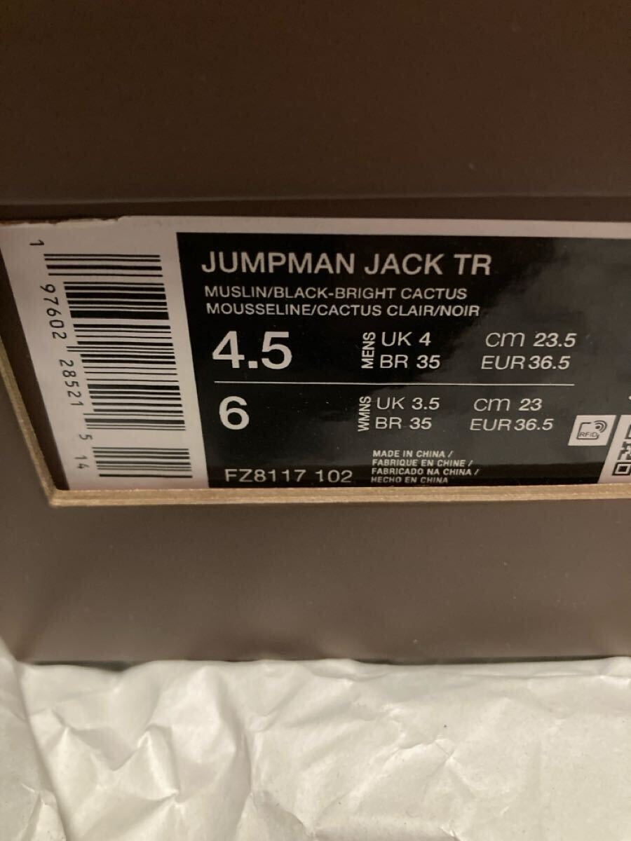 TRAVIS SCOTT × JORDAN JUMPMAN JACK TR "BRIGHT CACTUS" FZ8117-102 (モスリン/ブラック/ブライトカクタス)