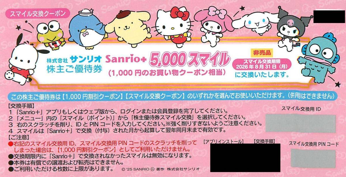 ※その他詳細は券面およびHPにてご確認ください。⇒https://corporate.sanrio.co.jp/ir/stock/yutai/