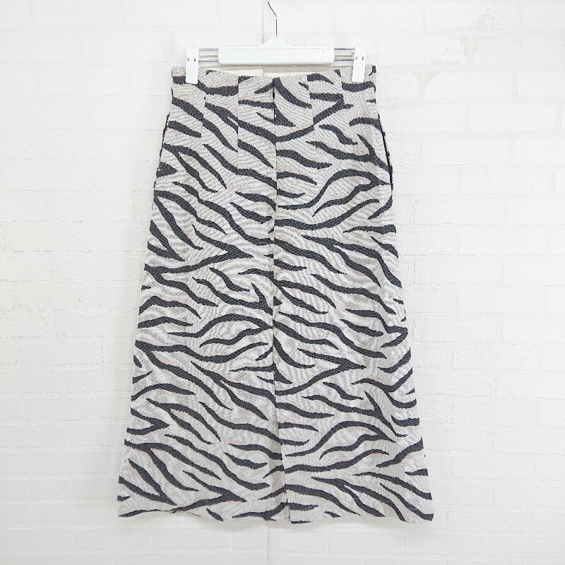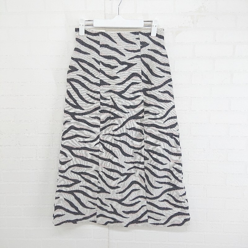◇ MOUSSY マウジー 総柄 スリット ロング Aライン スカート サイズ2 サンドベージュ ブラック ネイビー系 レディース P