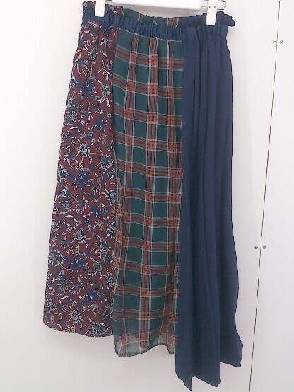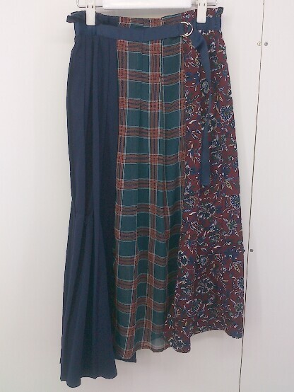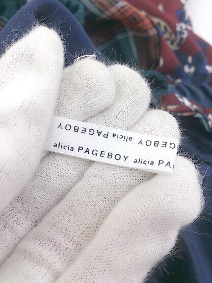 ◇ PAGEBOY ページボーイ ALICIA ウエストゴム 切替 ロング プリーツフレア スカート サイズF ネイビー マルチ レディース