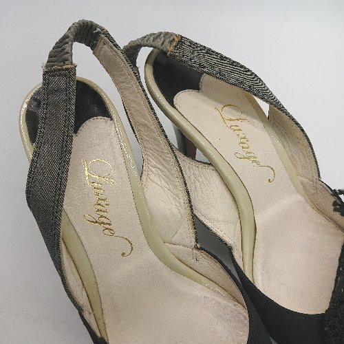◇ Luxage レース ヒール シンプル 大人 サンダル サイズ22 ブラック レディース E