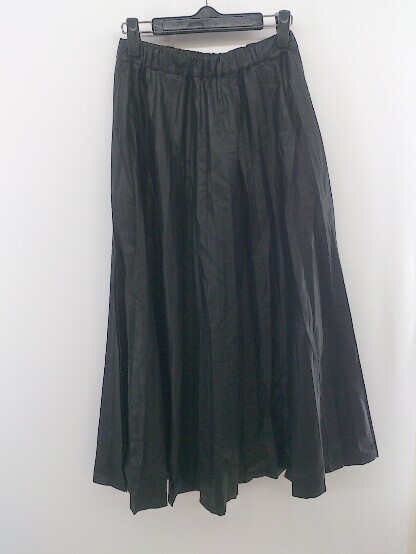 ◇ Heather ヘザー フェイクレザー ロング プリーツ スカート サイズF ブラック レディース E