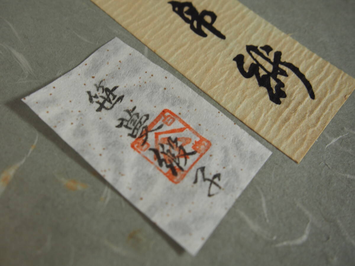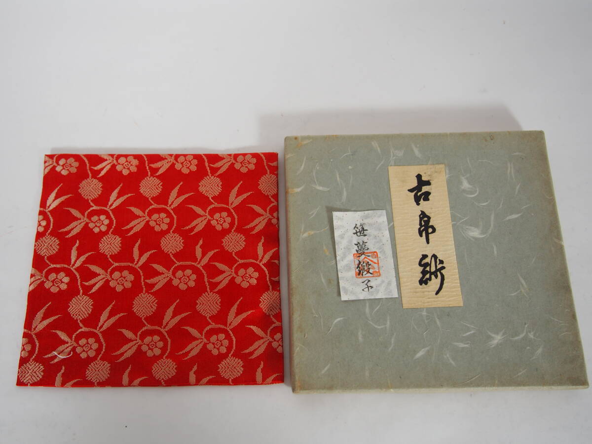 古帛紗  笹蔓緞子   裂地札付  茶道具  25 1129-36-2