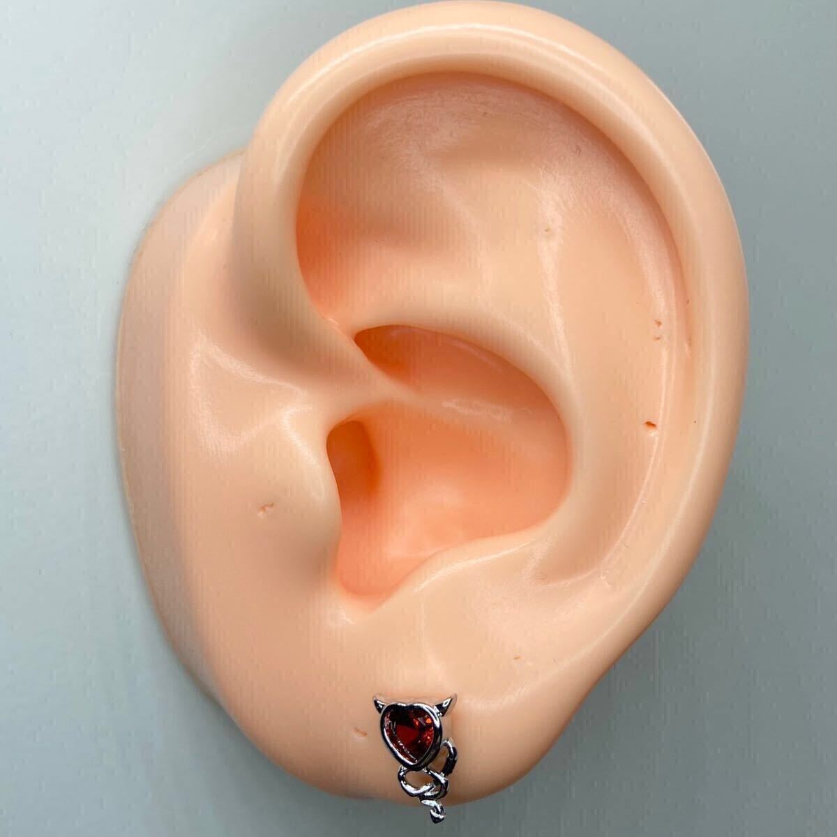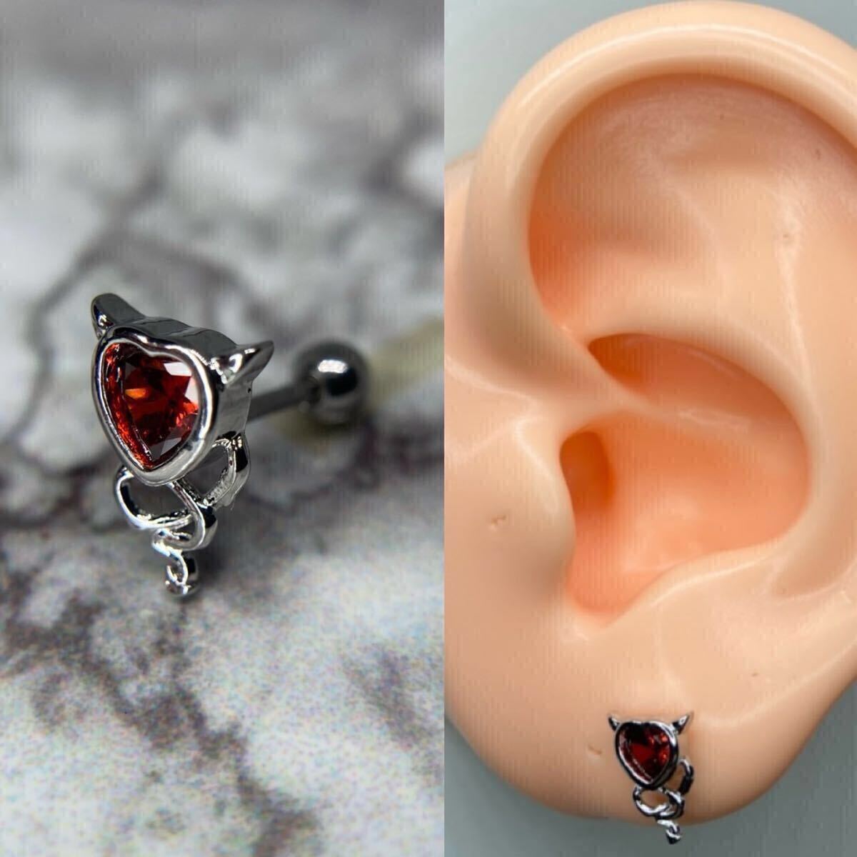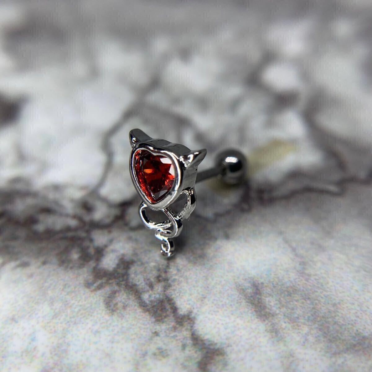 【新品】スタッド ピアス 悪魔 デビル ハート レッド シルバー アクセサリー ボール 韓国 メンズ レディース ジルコニア ダイア 片耳 18g