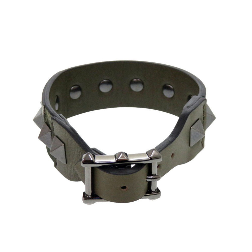 新品同様 ヴァレンティノ ガラヴァーニ スタッズ ブレスレット カモフラージュ 迷彩 レザー カーキ 1064 Valentino Garavani