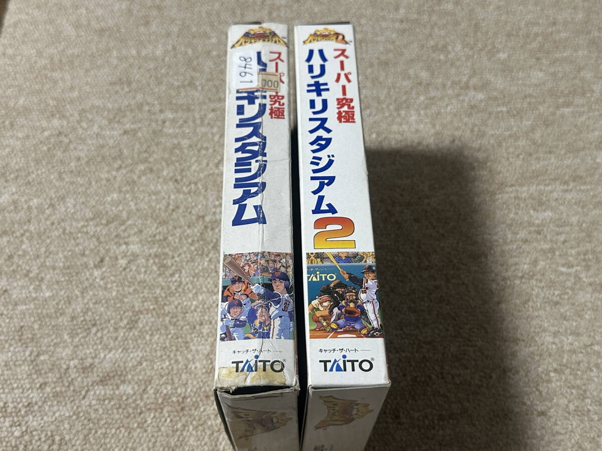 ・自宅倉庫で箱に入れて保管しておりましたが、年月相応の汚れ、傷み(特に「SUPER究極ハリキリスタジアム」は外箱に耳の破れやよれが目立ちます。)等があります。完璧な状態、未使用品などをご希望される方は入札をお控え下さい。(ノークレーム/ノーリターン/ノーキャンセルでお願いいたします。)