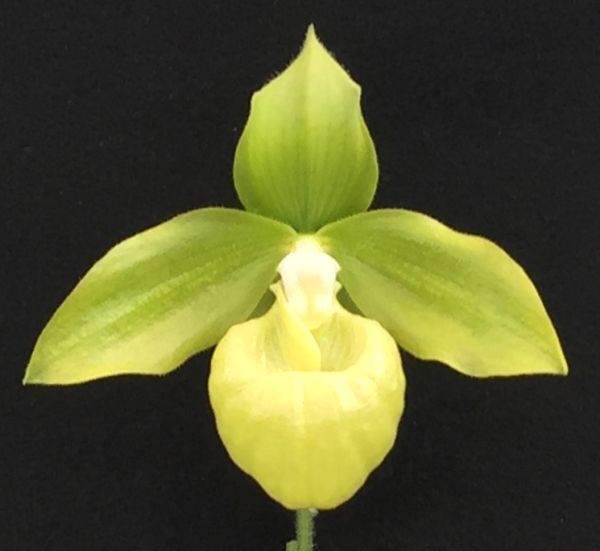 現在でも稀少で大変高価なアルバム個体を使用した実生のフラスコです。母体は台湾の実生('Super Bear' SM/JOJA-TPS x 'Bear 89')からの大輪でセパル、ペタルとも幅広のセレクト個体、花粉親は中藤洋蘭園の実生からのセレクト個体です。