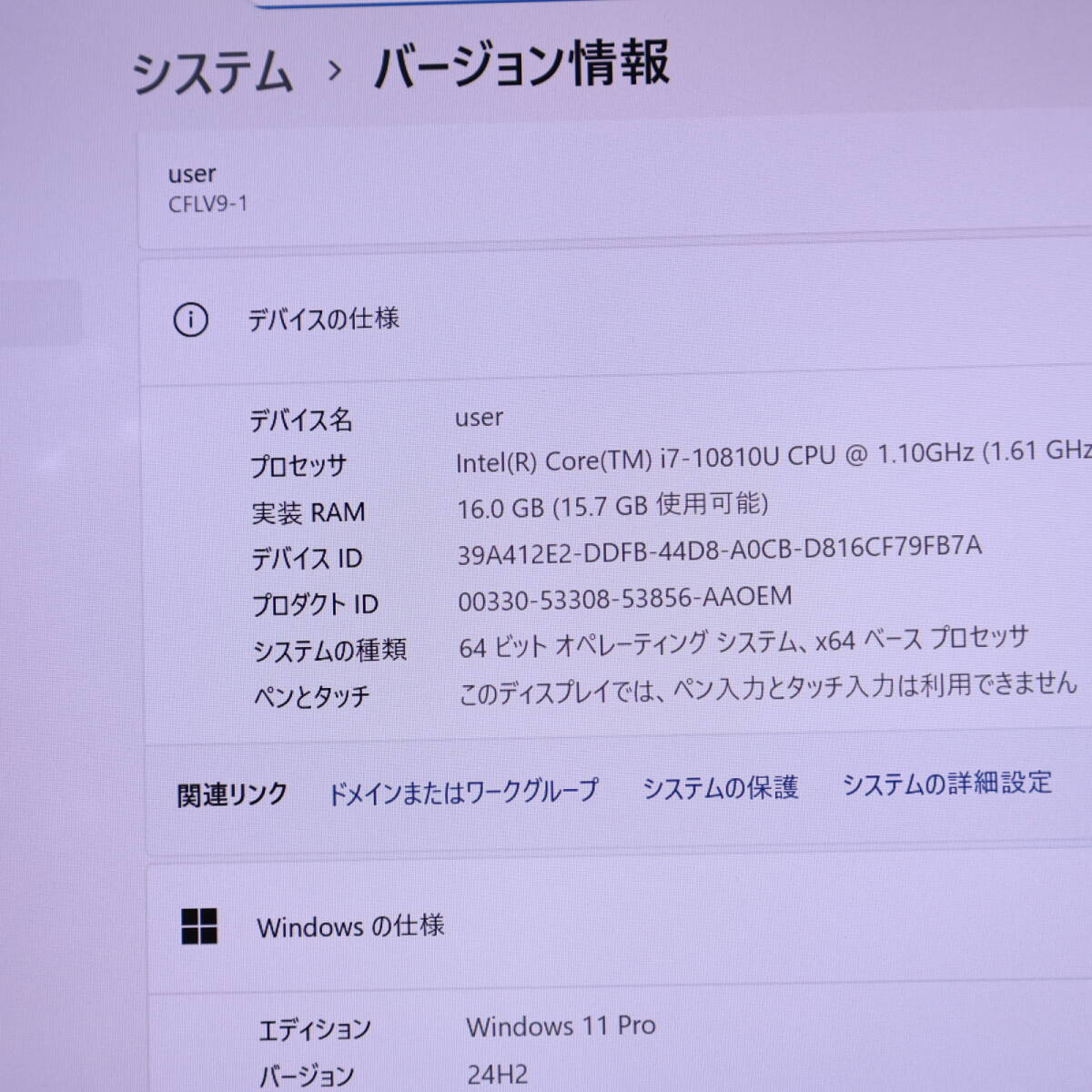 ★完動品 最上級10世代i7!M.2 NVMeSSD512GB メモリ16GB★CF-LV9 Core i7-10810U Webカメラ TypeC LTE Win11 MS Office2019 H&B★P93462
