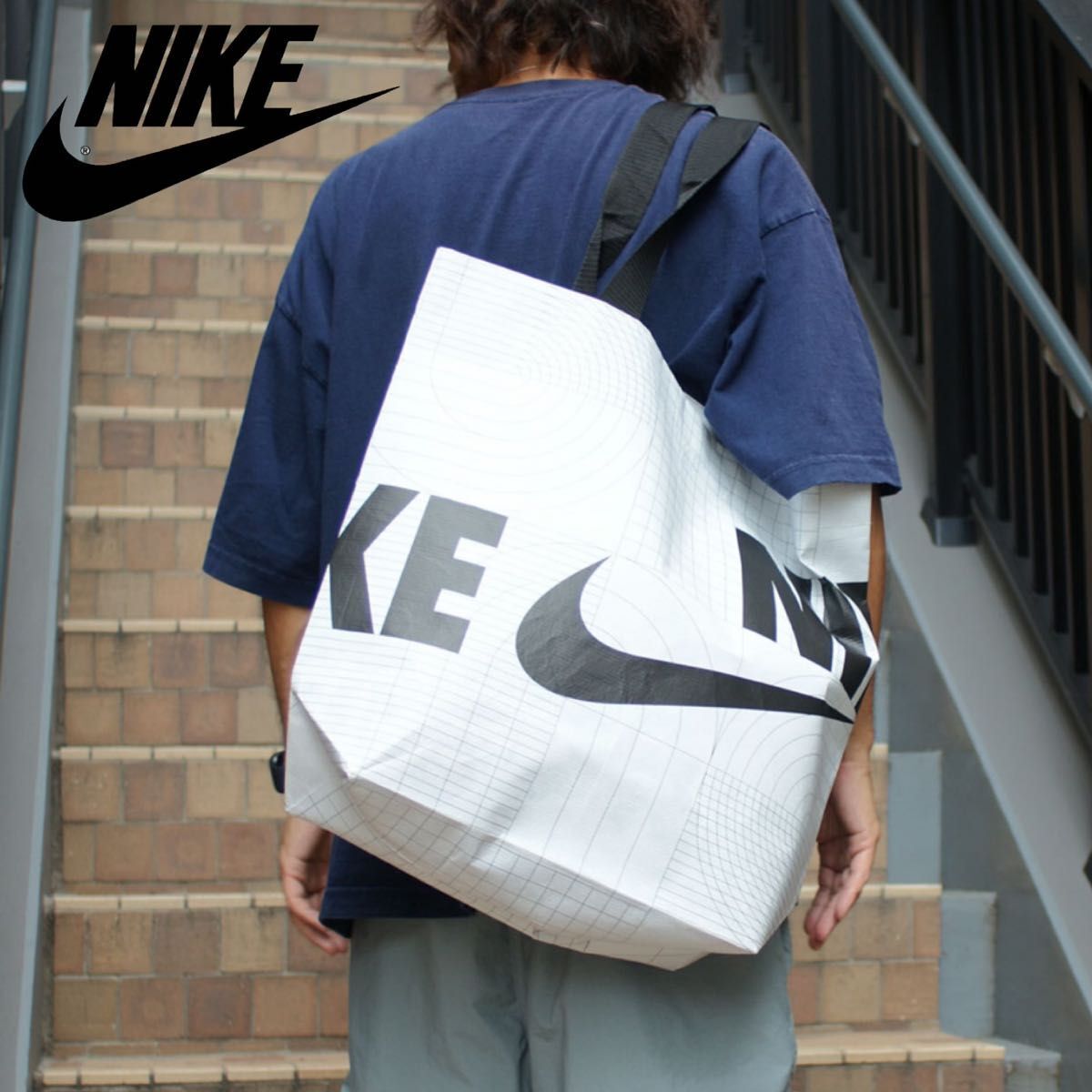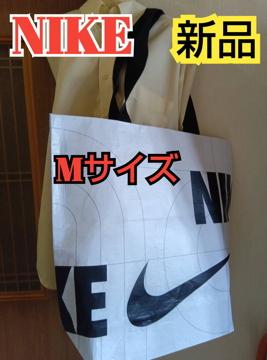 NIKEのMサイズエコバッグ、ロゴプリントデザイン。