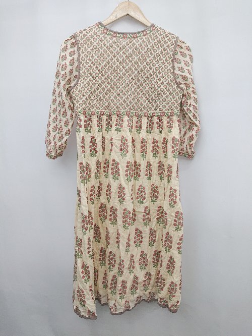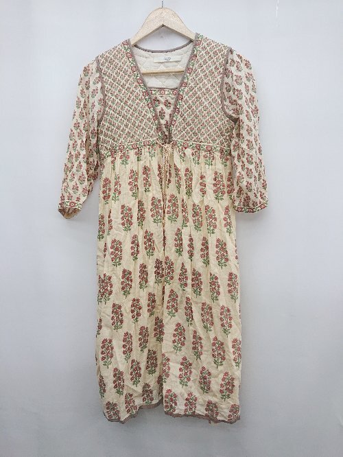 ◇ Another Edition 総柄 切替 裏地付き 七分袖 膝下丈 ワンピース ベージュ系 マルチ レディース P