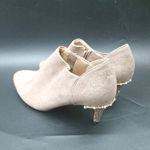 ■ ⊇ RANDA ランダ ラメ入り ビジュー装飾 ショート丈 ブーティ サイズLL ライトブラウン系 レディース E