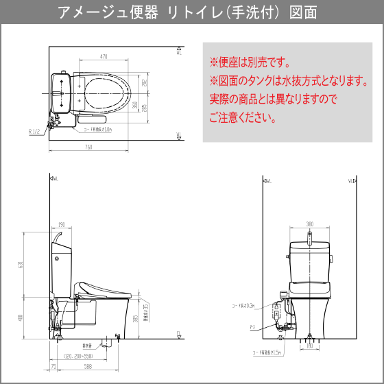 ★ 排水芯551~580mmの場合、便器を1~30mm前に出しての施工となります。