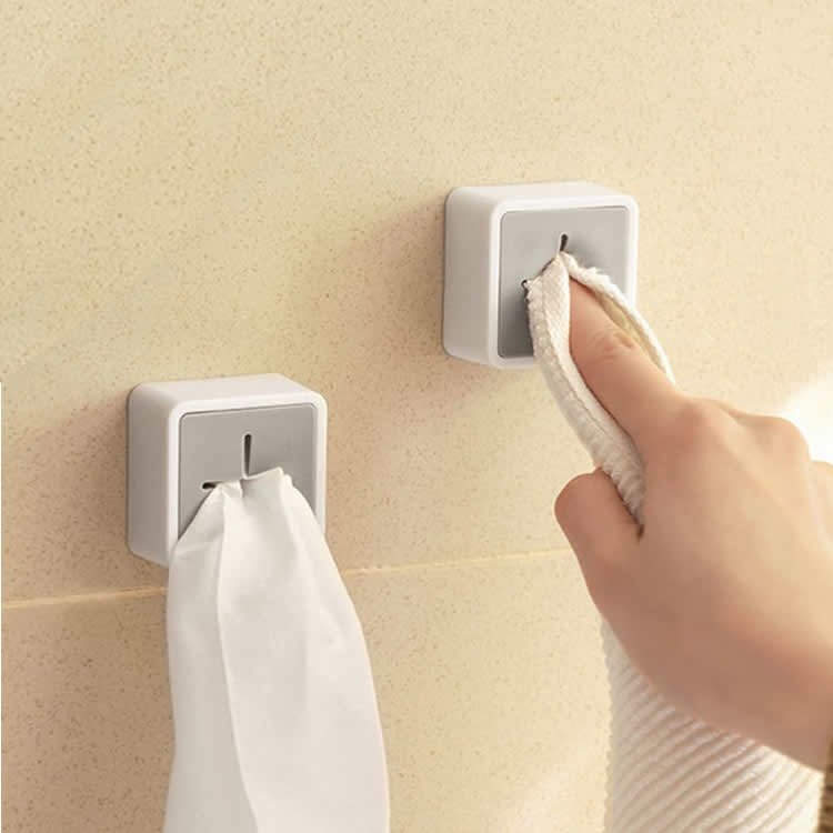 ◆タオルホルダー 2個セット タオル掛け タオルクリップ 壁掛け 防水 耐久 簡単取り付け 貼り付けだけ タオル掛け キッチン シンク扉 洗面所 トイレ コンパクト【ホワイト1個グレー1個】 TWH02S