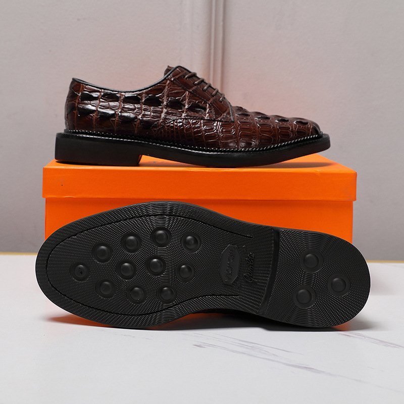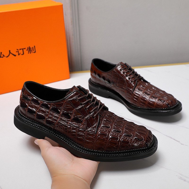 クロコダイルレザー ビジネスシューズ 最高級 ワニ革 クロコダイル 靴 メンズシューズ 革靴 ブラウン 26.5cm 【n786】