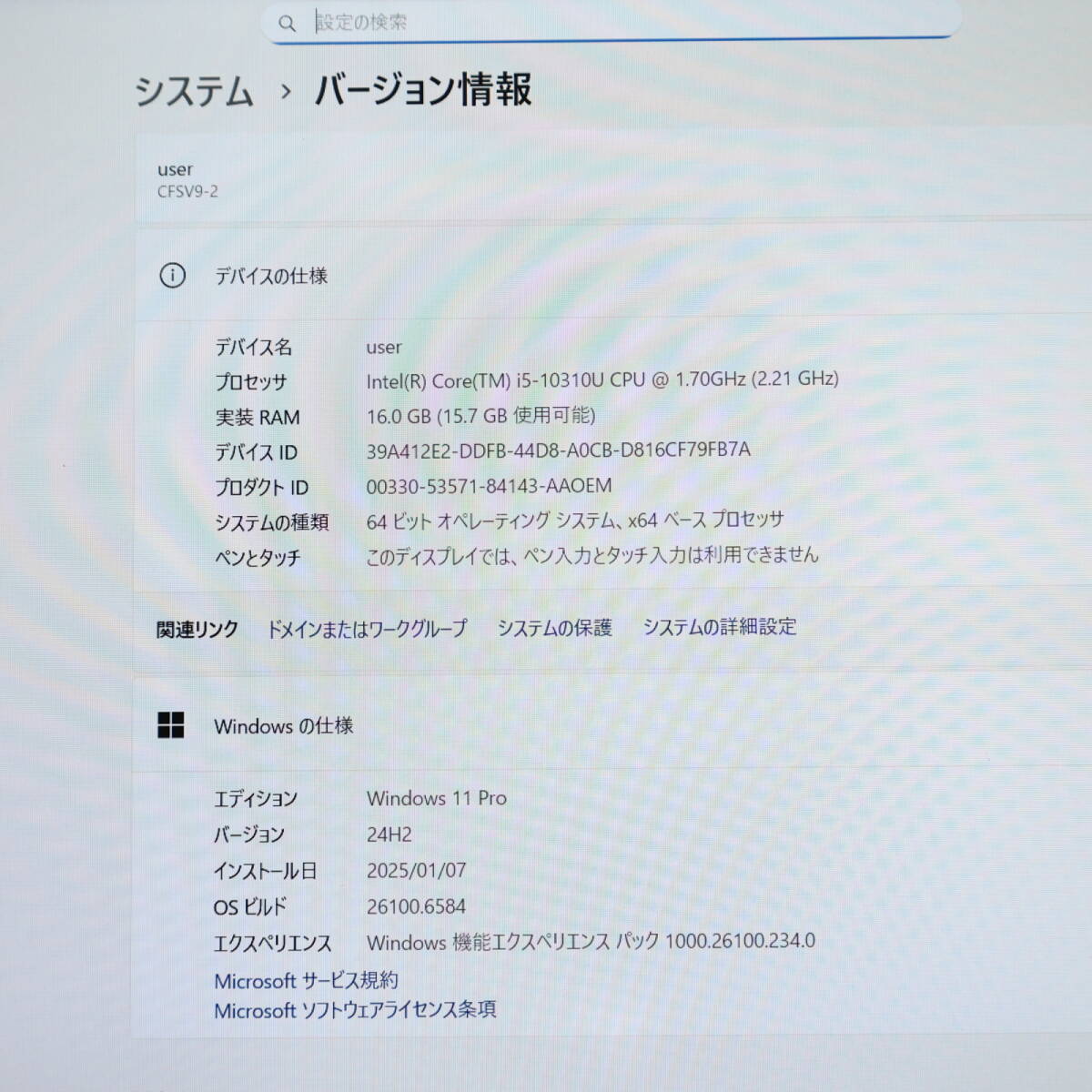 ★美品 高性能10世代4コアi5!M.2 NVMeSSD256GB メモリ16GB★CF-SV9 Core i5-10310U Webカメラ TypeC Win11 MS Office2019 H&B★P93752