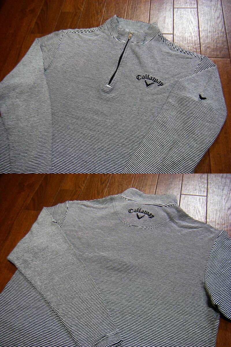超伸縮/良品〇キャロウェイ Callaway モック M 薄手 シャツ ボーダー 刺しゅうロゴ 白色&黒色
