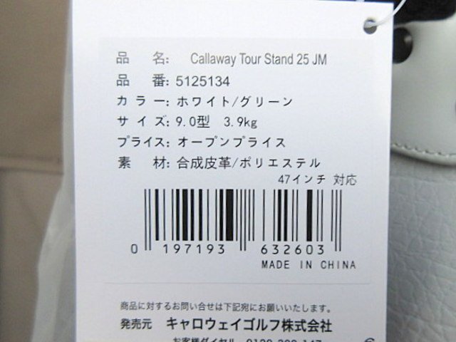 T 新品 キャロウェイ ツアー スタンド 25 JM キャディバッグ 5125134 ホワイト/グリーン 9.0型