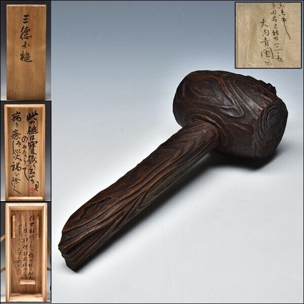 U08839 仏師 彫刻家 大内青圃 識 三徳小槌 伝 即非 禅師 作 黄檗山 不動貯金銀行 牧野元次郎 頭取 秘蔵 伝来 日本芸術院 /G273