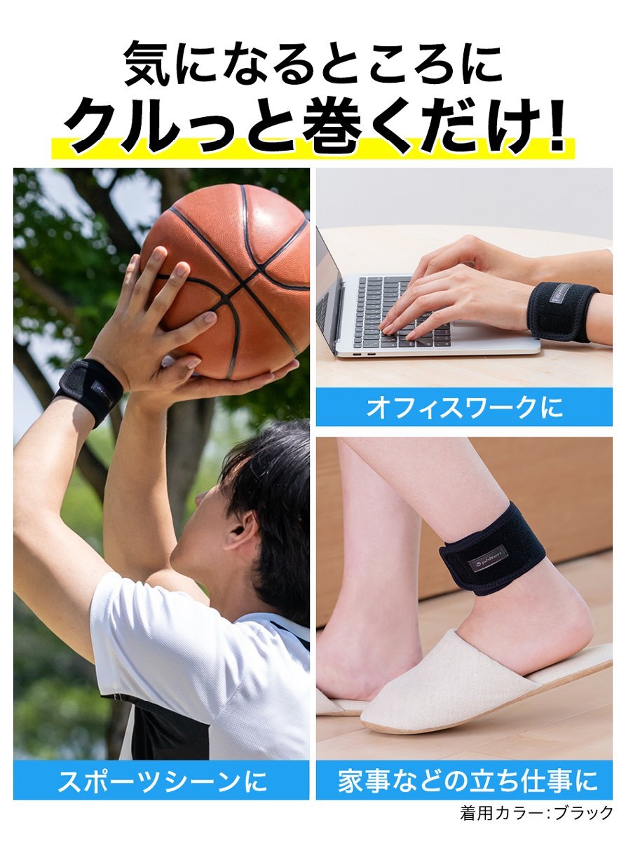 伸縮性、耐久性に優れた構造で、スポーツ時はもちろん仕事や家事の時にもおすすめのサポーター。
