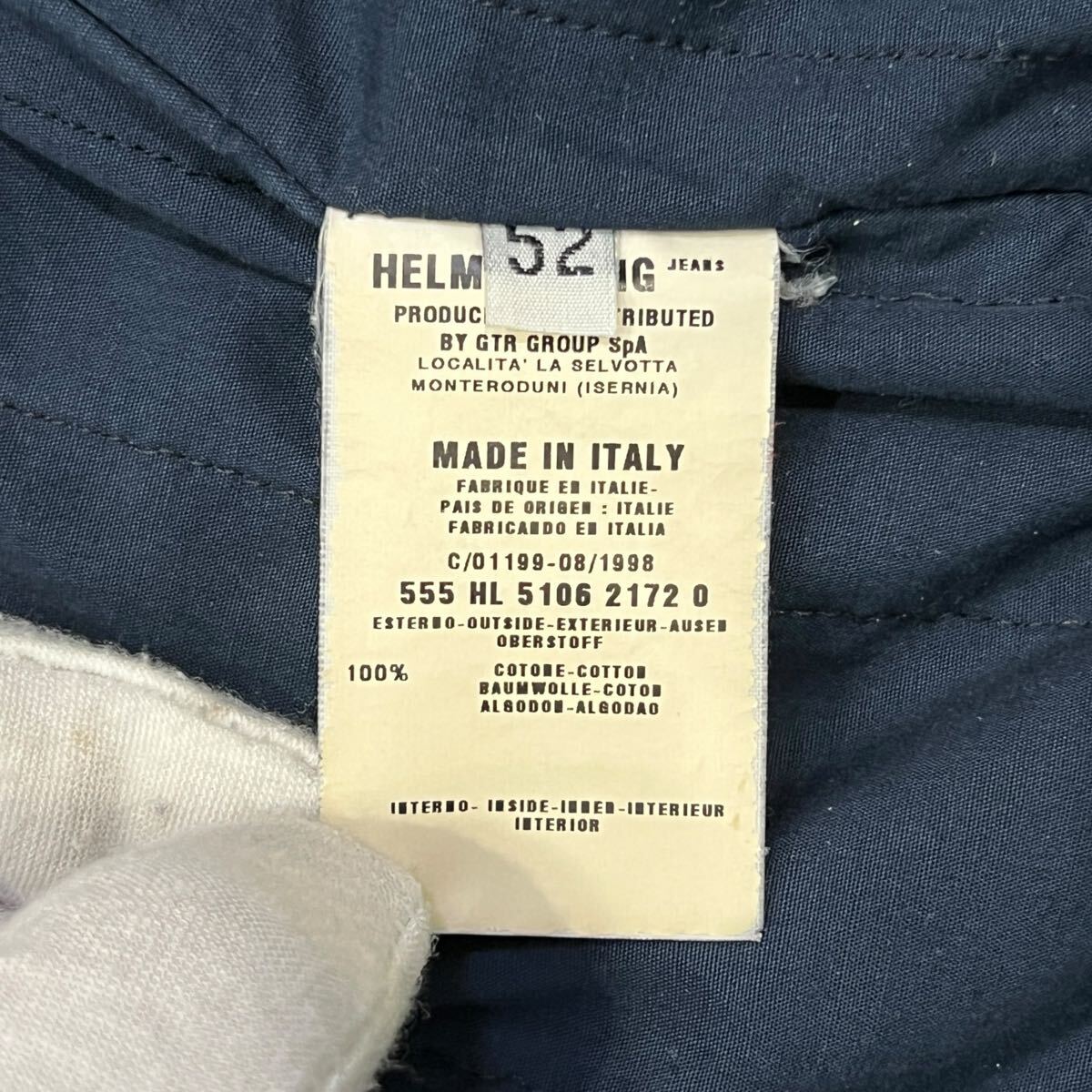 このジャケットは、Helmut Lang(ヘルムートラング)の1998年秋冬コレクションから発表された、ブランドのミニマリズムを象徴するパデッドアウターです。1990年代後半のラングは、ミリタリーやワークウェアの要素を極限まで削ぎ落とし、現代的なユニフォームへと昇華させるスタイルを確立しており、本アイテムはその哲学を色濃く反映しています。