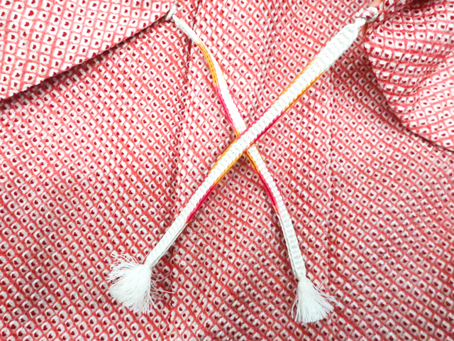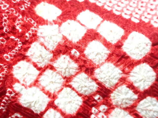汚れ:絞りにアク、後身頃や羽裏にシミ、衿や袖に薄いシミがございますが、着用可能です。