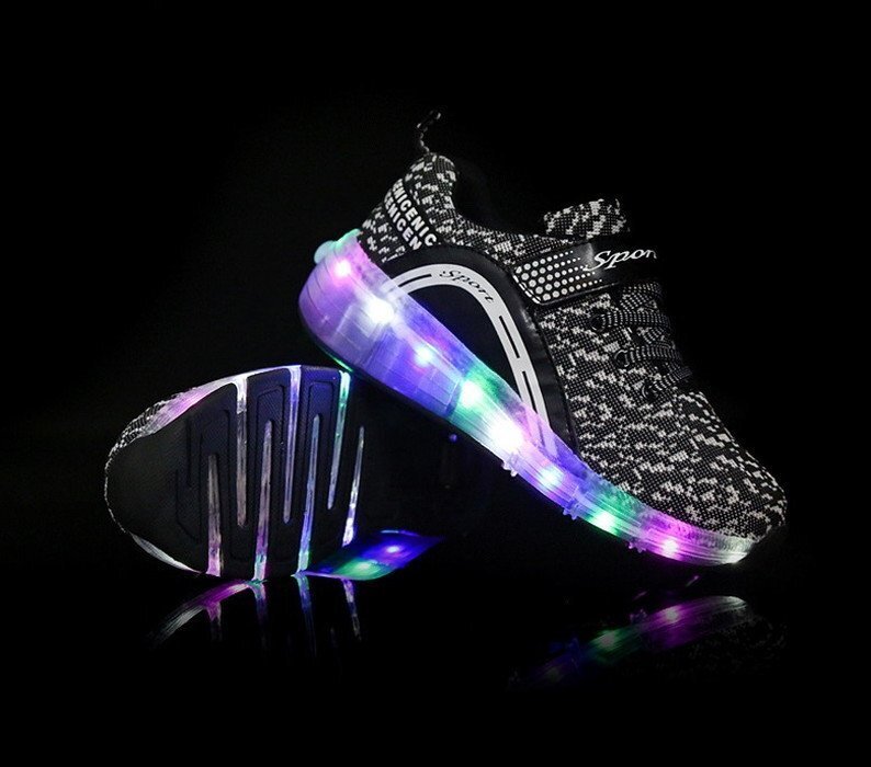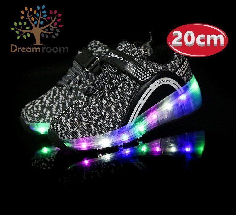 1スタ☆光る☆LED ライトアップスニーカー&ローラーシューズ 一体型 【K-166ブラック 20cm】夜間 スケート靴 反射材 ジョギング 自転車