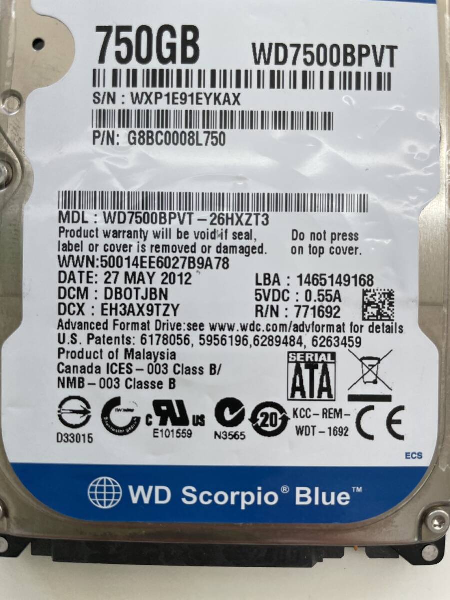 ★ウェスタン デジタル/750GB/HDD/2.5インチ/SATA/WD7500BPVT★
