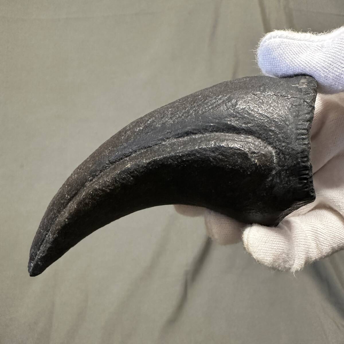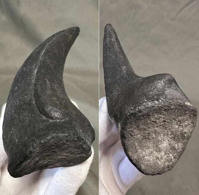 13㎝クラスのカルカロドントサウルスのクロウ、市場に流通する中では最大級です。カルカロドントサウルスのクロウは、鋭く細長いため破砕しやすく、まともに出土することが少ないのです。