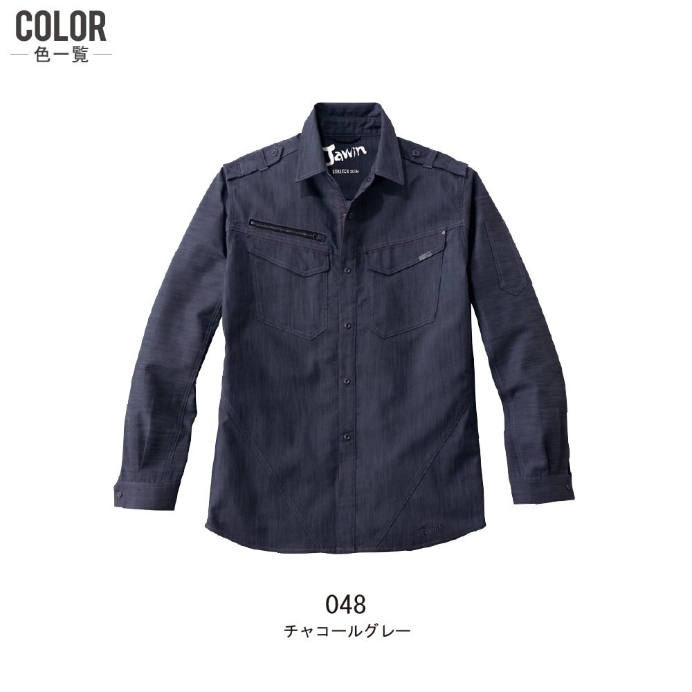Jawin ジャウィン 秋冬 ストレッチ 長袖 シャツ スタイリッシュ 優れた伸縮性 52604 色:チャコールグレー サイズ:5L