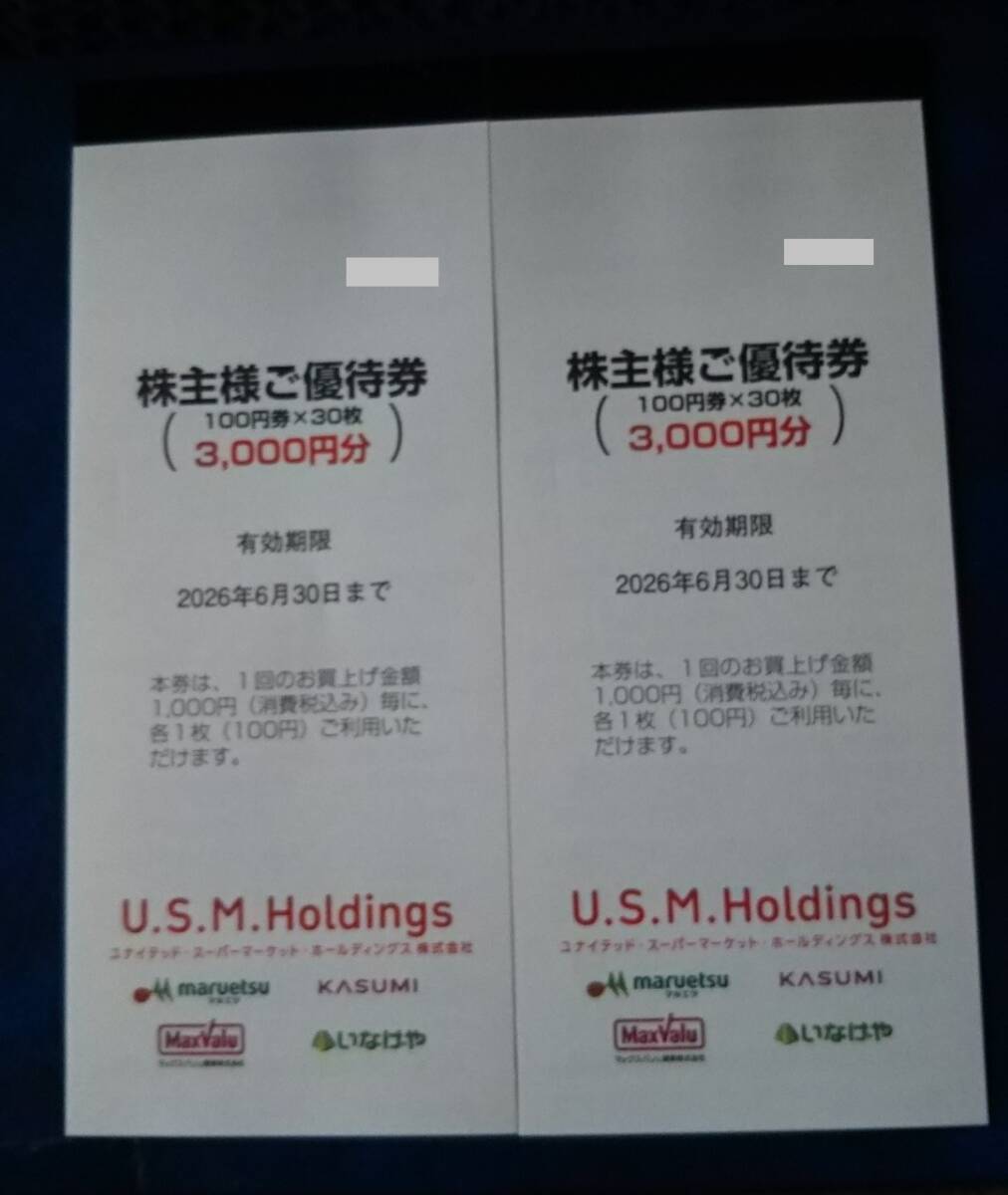 最新★2026年6月30日迄★ ユナイテッド スーパーマーケット 株主優待券 6,000円分(100円×60枚) マルエツ カスミ マックスバリュ関東
