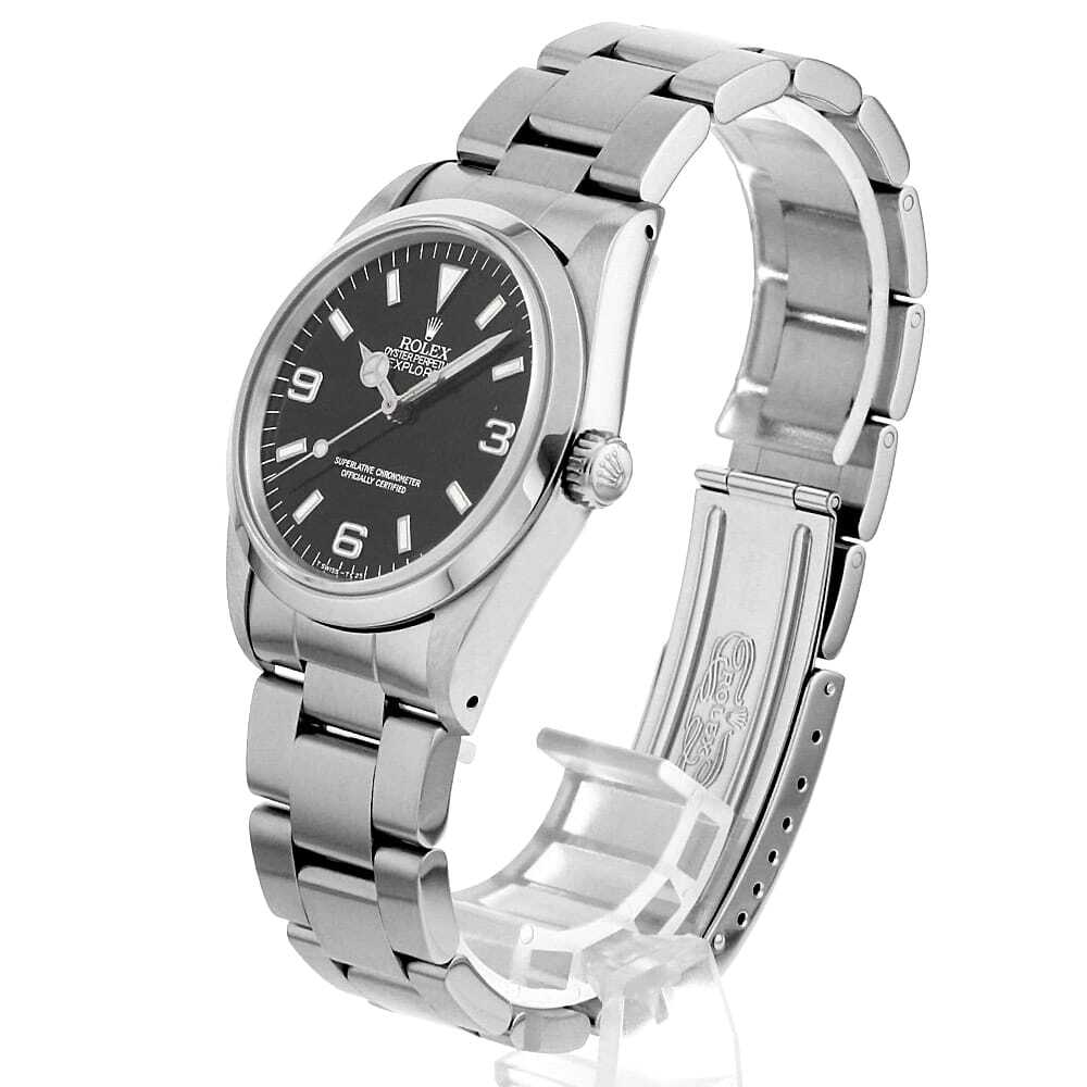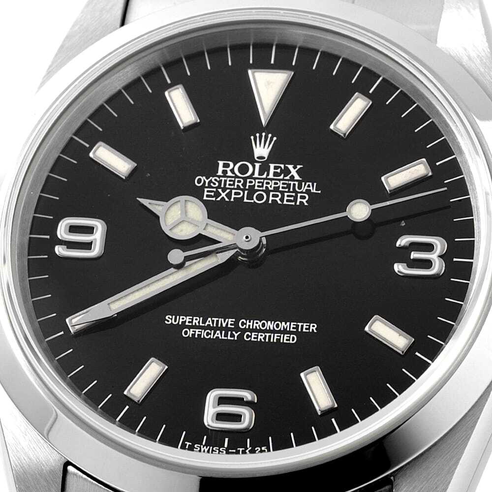 | モデル情報 | 「探検家」と名付けられた"エクスプローラーI"。こちらは、ロングセラー「1016」の後継機として1990年に誕生したモデルです。1016から大幅にダイアルデザインが改良されており、現行エクスプローラーのデザインの礎を築きました。搭載するムーブメントはCal.3000。傑出したロレックスの基幹モデルとして、生産終了して今なお中古市場で高い人気を誇ります。14270のダイアル6時位置の表記は大きく分けて3種類あり【初期(T SWISS-T<25)、中期(SWISS)、後期(SWISS MADE)】となります。 |