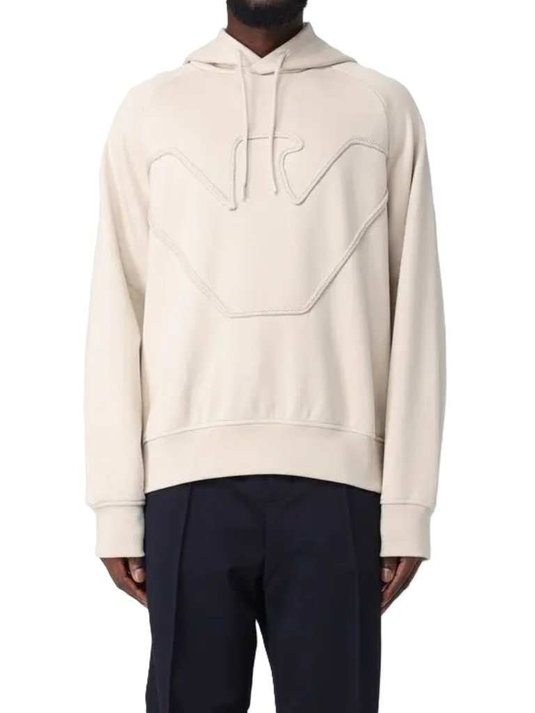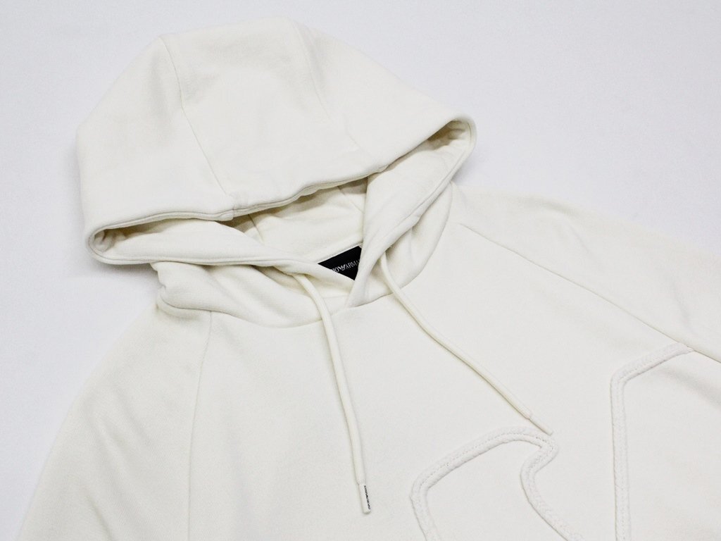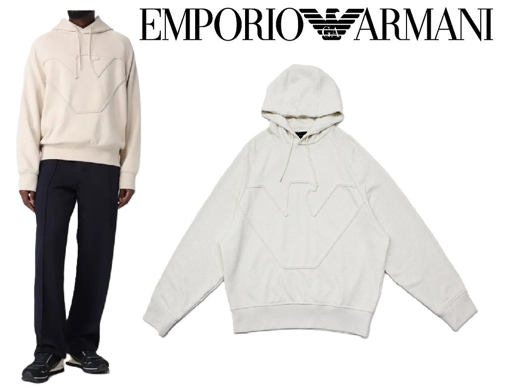 6万新品◆L◆EMPORIO ARMANI アルマーニ◆イーグルロゴ ロープエフェクト コットンフーディ―スウェットパーカー ホワイト白