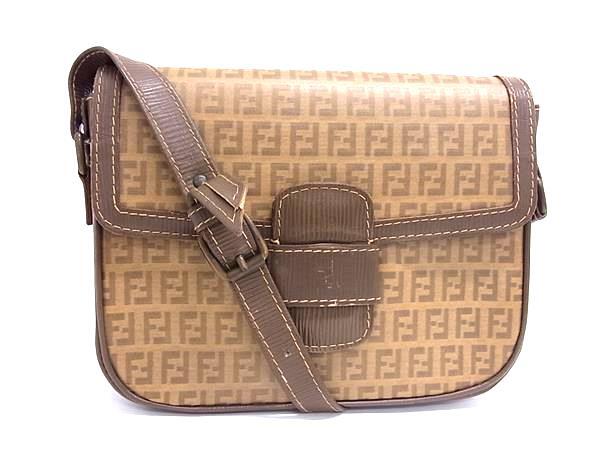 1円 FENDI フェンディ コーティングキャンバス×レザー クロスボディ ショルダーバッグ 斜め掛けかばん ブラウン系 BT0284