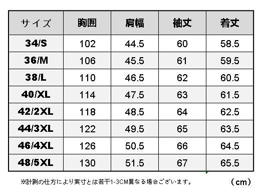 ★ご落札後お取引ナビでご希望サイズお知らせください★ 1.3mmの茶芯ホースハイドを使用した、しっかりとした質感の革ジャンです。 イタリアンレザー仕上げで、柔らかさと耐久性を兼ね備えています。 アウトロースタイルのシングルライダースデザインで、クラシックな雰囲気が魅力です。 カジュアルから通勤スタイルまで、幅広くコーディネートしていただけます。 ギフトにもおすすめの上質な一着です。 馬革ならではの経年変化を楽しみながら、長く愛用できます。 着込むほどに体に馴染み、あなただけの味わいが出てきます。 存在感のあるデザインで、大人のカジュアルスタイルを格上げしてくれます。 ■状 態 :新品未使用 ■カラー :画像参考 ■実 寸 :背中側採寸 身幅/脇下すぐ ■SIZE :画像参考 ■素材:ホースハイド (茶芯馬革) ※サイズだけでは無く,必ず実寸をご確認下さい。 ※実寸は平置実寸。計測の仕方で若干の誤差がありますので参考程度。 |