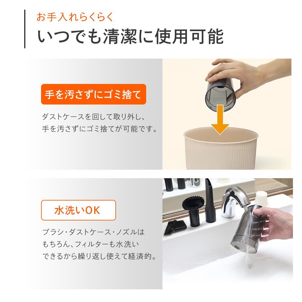 | セット内容 | 本体、接続パイプ×2、USB充電ケーブル、ブラシ、床ブラシ、フラットノズル+ブラシ | |