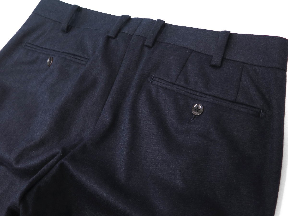 しっかりとしたストレッチ性のある生地なので、裾を絞った細身テーパードにしてすっきりと見えるようにしています。