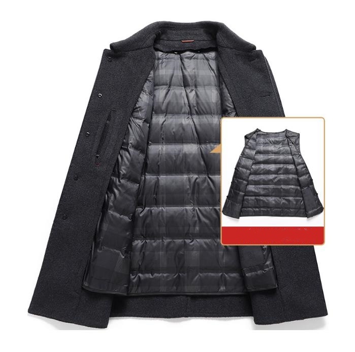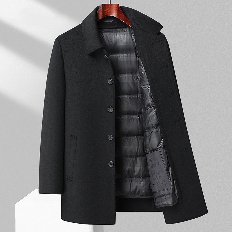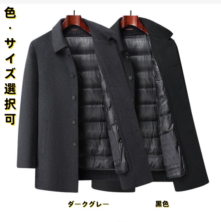 ステンカラーコート メンズ★新品 ダウンコート ウールコート ダウンライナー ビジネスコート アウター【DY8208】黒色 XL