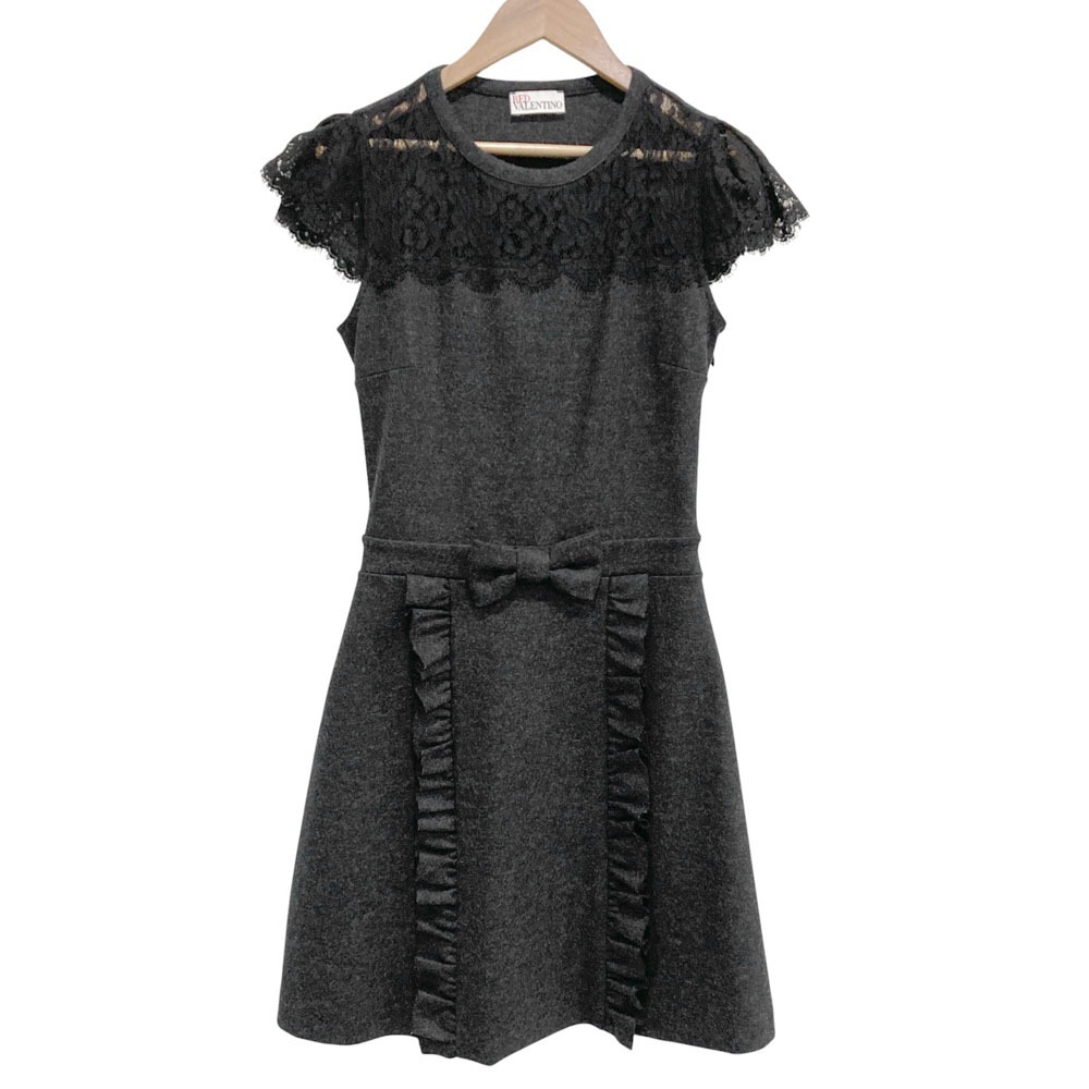 美品 RED VALENTINO レッドヴァレンティノ リボン レース使い ワンピース グレー