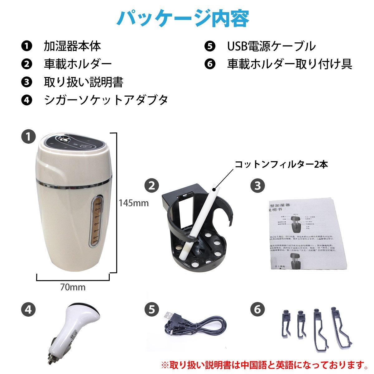 【新品即納】シガーソケット対応 USBミニ加湿器 DC12V 超音波ミスト アロマオイル ブルーLED ホワイト/白