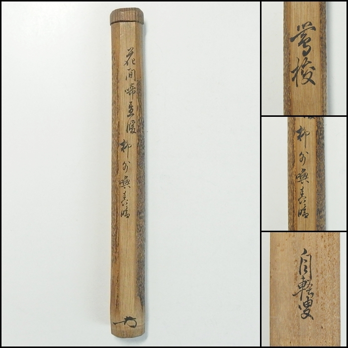 ●ご覧頂きまして誠にありがとうございます。 今回の出品は【251209-1】有楽流平尾家七代 平尾数也(自軽叟)自作竹茶杓 銘「鶯梭」共筒箱 茶道具です。 時代なりの汚れや若干経年による傷み、くすみ、筒の蓋別物、箱に破損などはありますので画像にてご確認下さい。 この機会に是非お手元にお納め下さい。 【サイズ】 茶杓 長さ:約18.5cm 竹筒 長さ:約21.1cm ※手計測ですので若干の誤差はございます。 予めご理解をいただいた上でご入札ください。 |