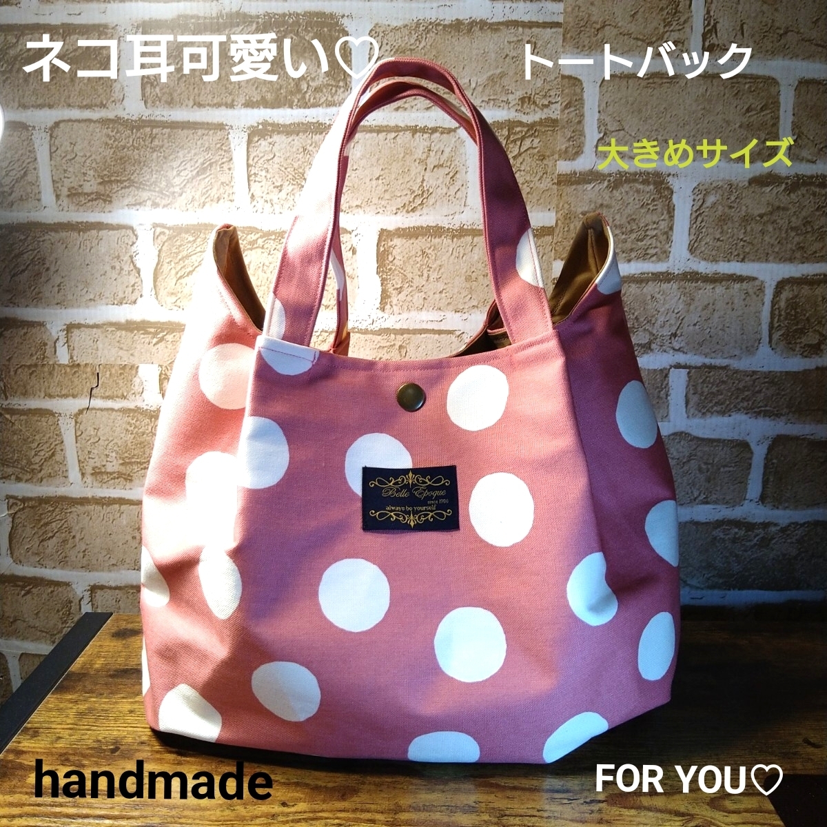 ふっくらマチとネコ耳が可愛いトートバッグです。