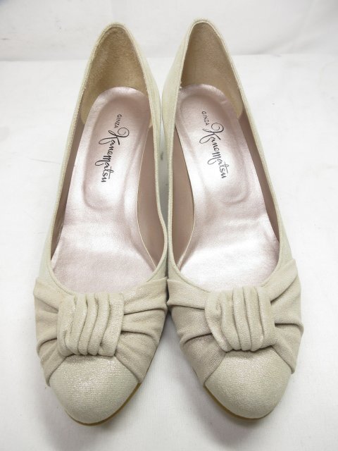 極美品 【銀座かねまつ カネマツ】 ラメ装飾 スエードパンプス 婦人靴 (レディース) size25D ベージュ系 ◇37LZ5072◇