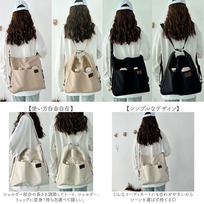 | 商品説明 | ・・【毎日使いたくなる】 ・シーンに合わせて使い分けできる!3wayバッグが登場。 ・【使い方自由自在】 ・ショルダー部分の長さを調節してトート、ショルダー、リュックに変身!持ち方選べて嬉しい。 ・【シンプルなデザイン】 ・どんなコーディネートにも合わせやすいからシーンを選ばず持てる〇 ・【嬉しい容量】 ・A4サイズがすっぽり入るサイズ感で、必需品をまとめて持ち歩ける◎ ・【便利な収納】 ・内側にオープンポケット×1、ファスナーポケット×1を装備で小物の整理ができる。 ・【サッと取り出せる】 ・外側にオープンポケット×2、サイドポケット×2、ファスナーポケット×1を装備。 ・【雨の日も安心】 ・撥水加工が施されているから少しの雨なら濡れても大丈夫!※完全防水ではありません。 |