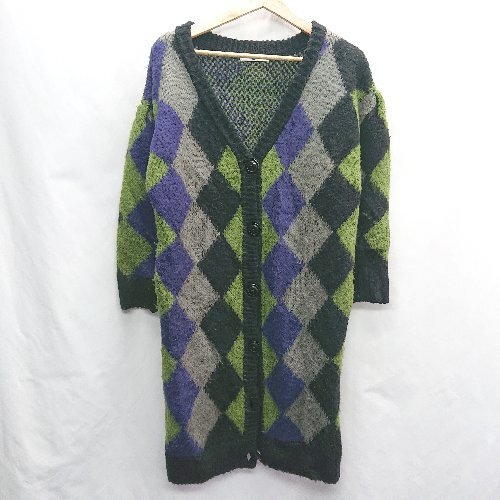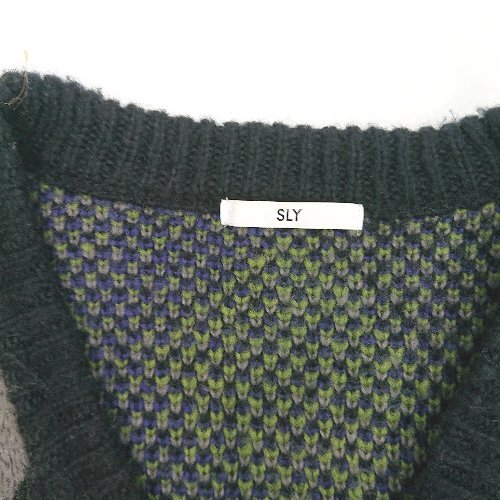 ◇ SLY スライ 総柄 長袖 ロングカーディガン サイズFREE グリーン グレー ブラック レディース E