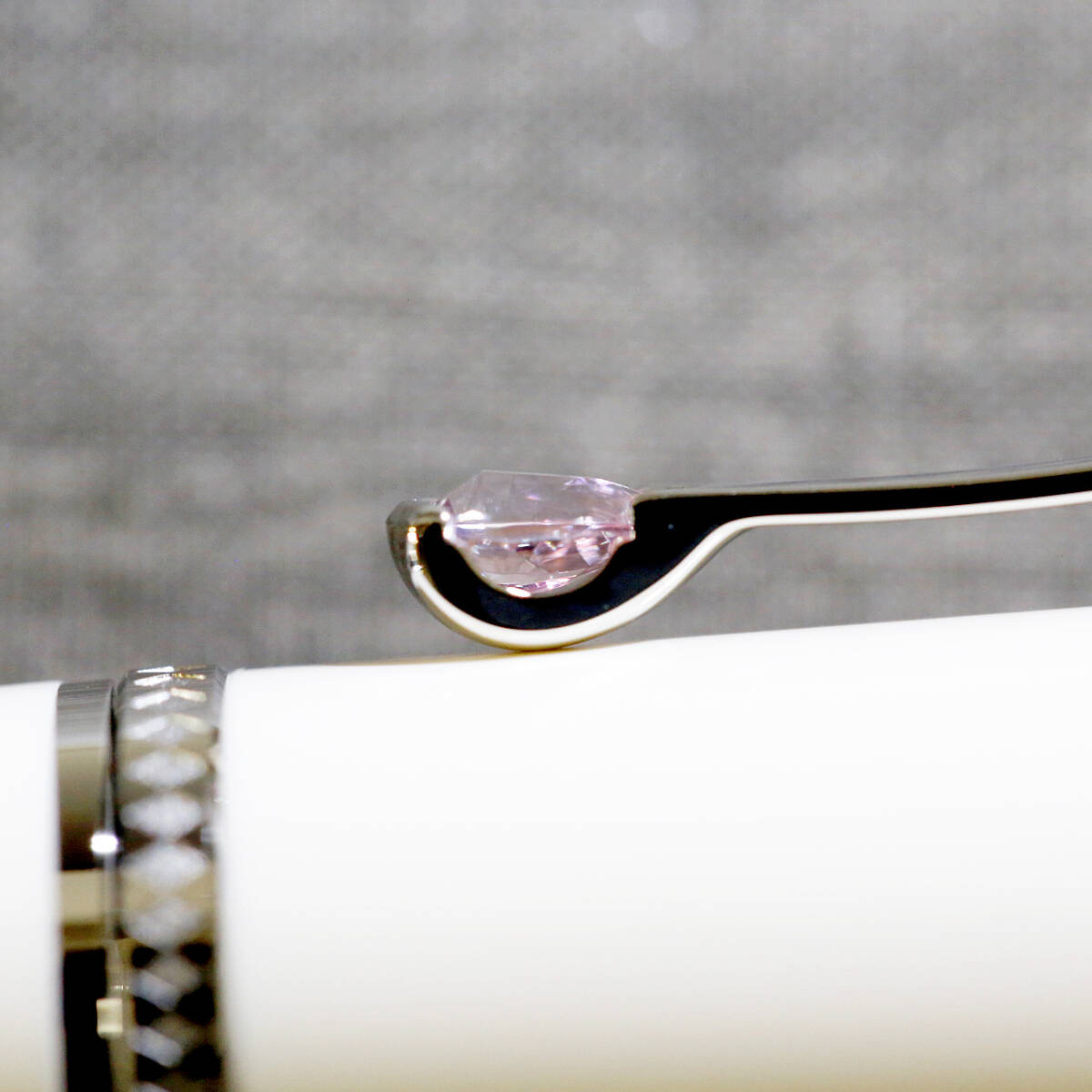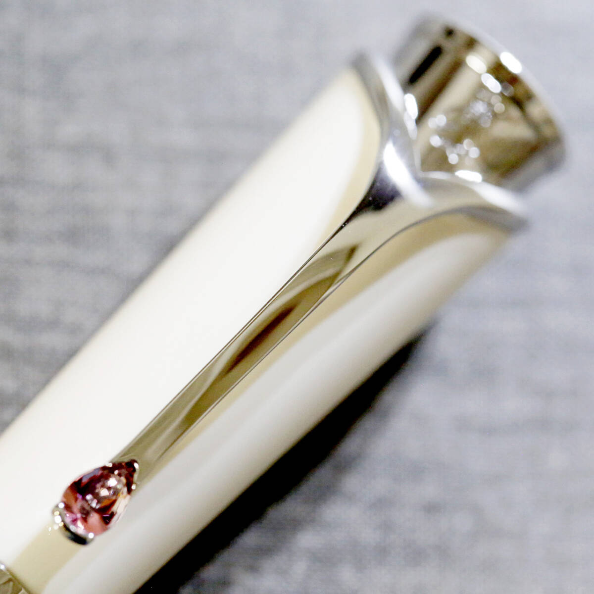 クリップに映えるピンクサファイア、気品に満ちたデザインの希少な限定品です。