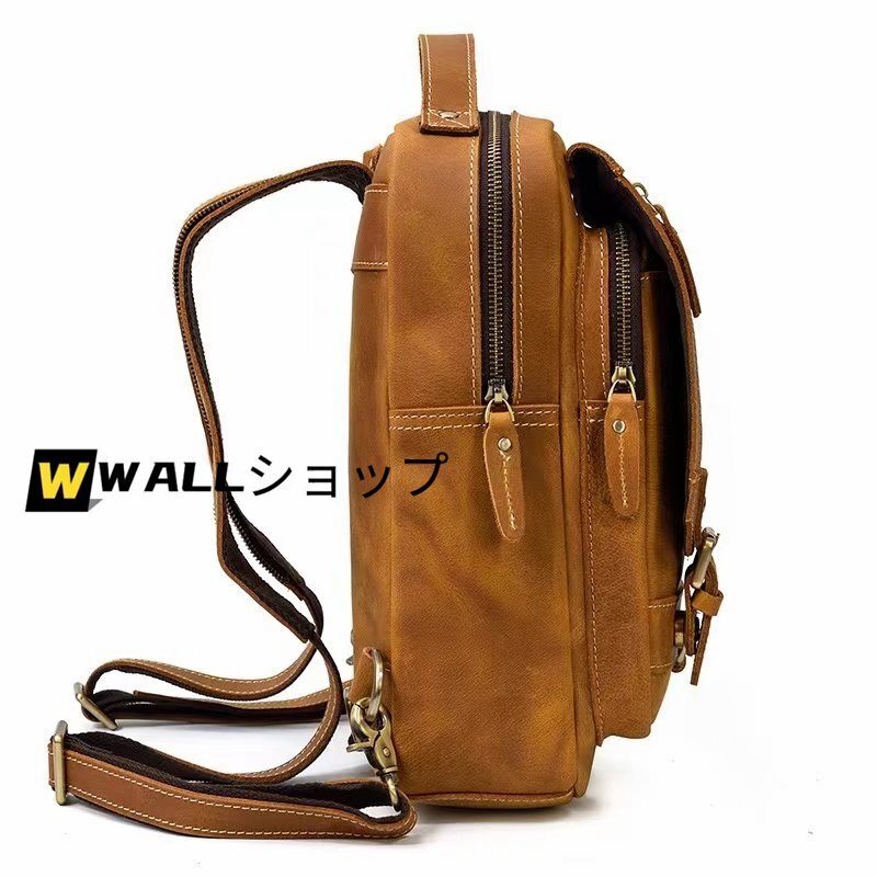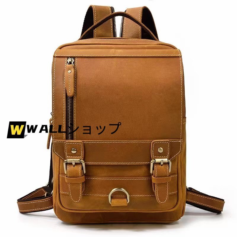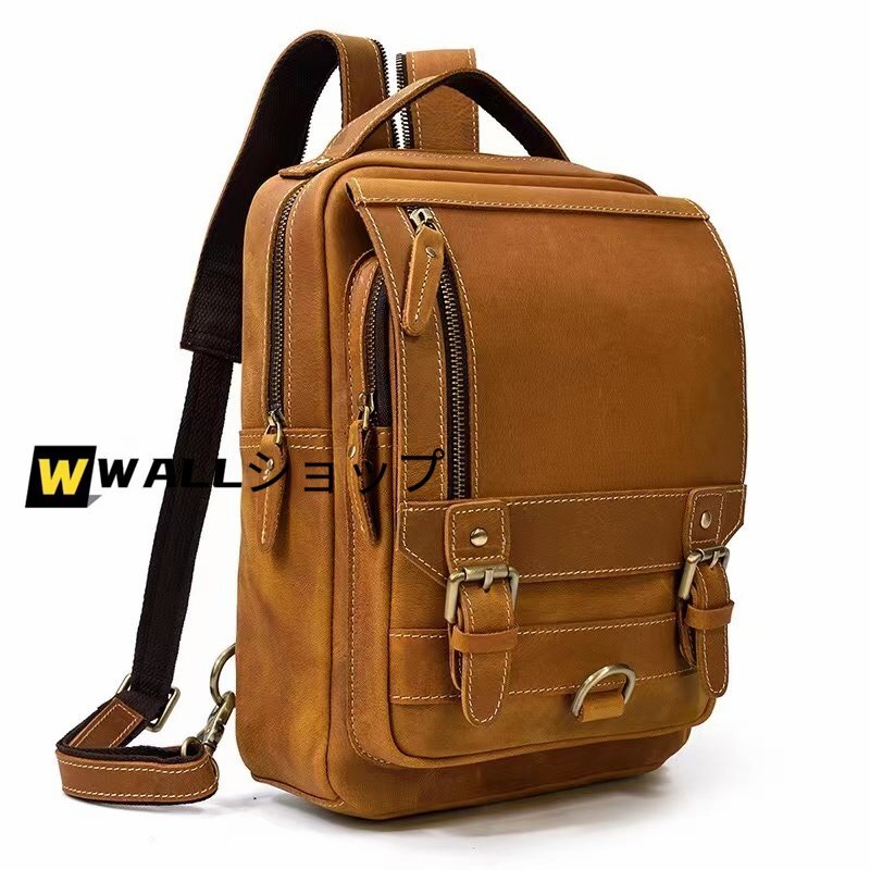 ボディバッグ 牛革 リュックサック A4書類 iPad対応 バックパック 斜めがけ鞄 カジュアルバッグ メンズ 本革 斜めがけ