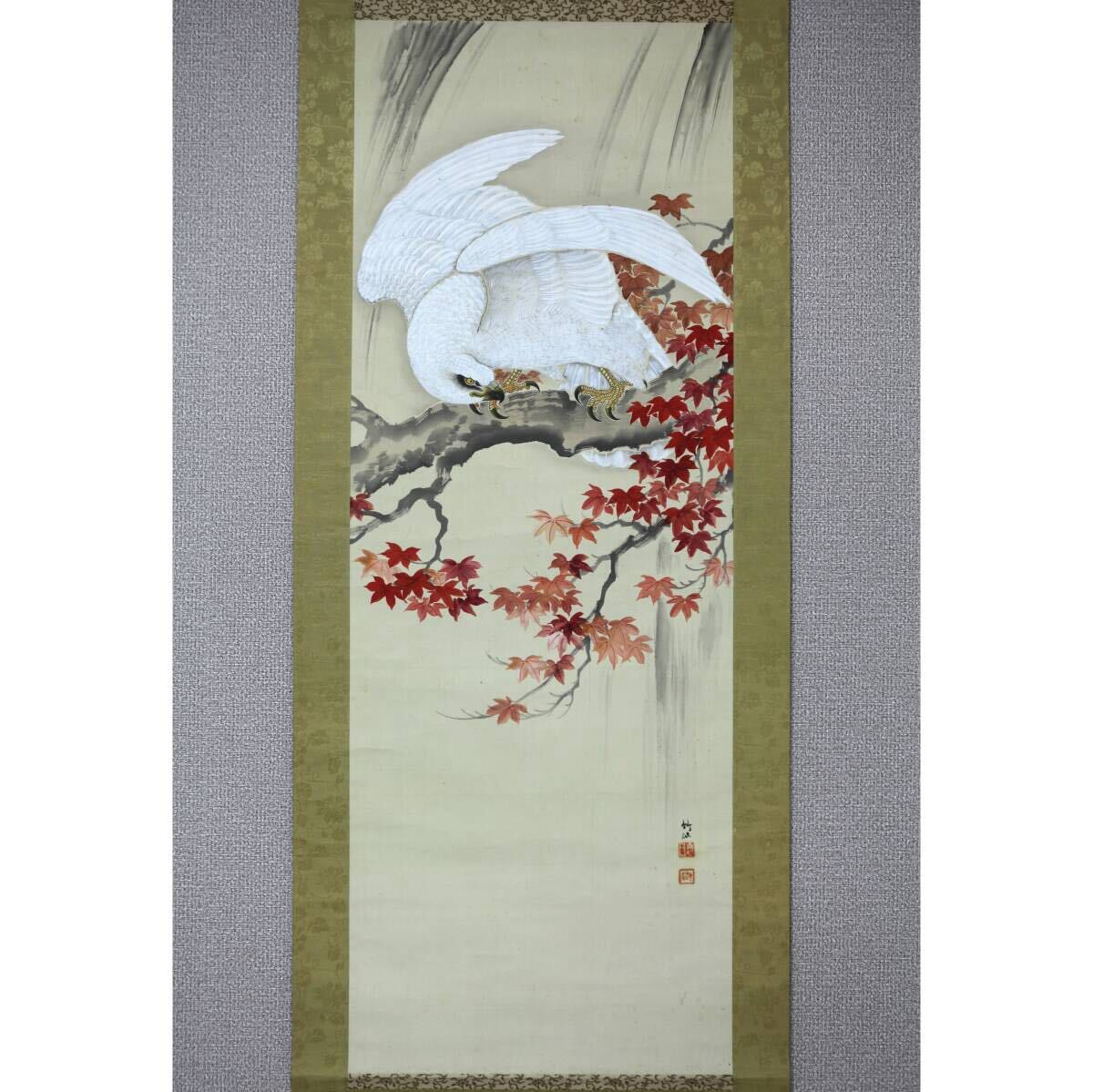| 【真作】【風車】 青柳竹仙 「紅葉白鷹」◎肉筆絹本◎明治・大正期 日本画家 「帝国絵画番附」 「東京之部優秀画家」掲載 | ||||||||||||||||||||
